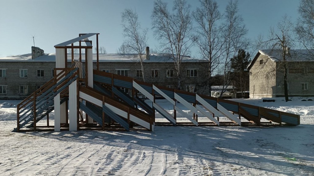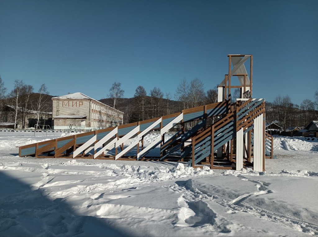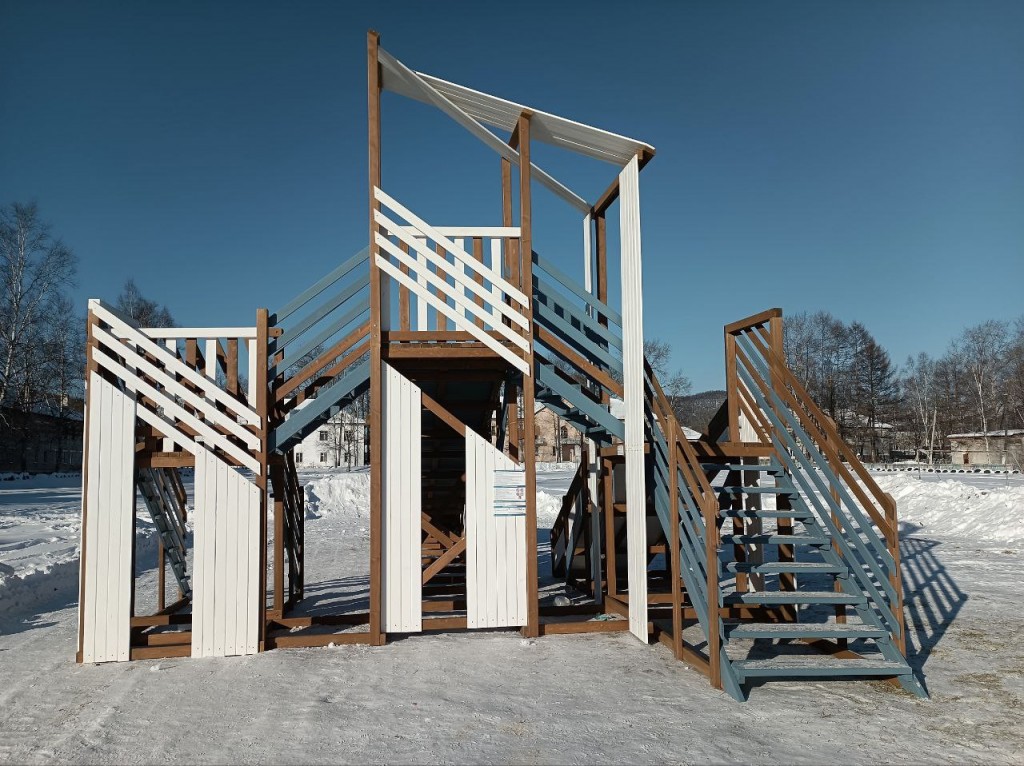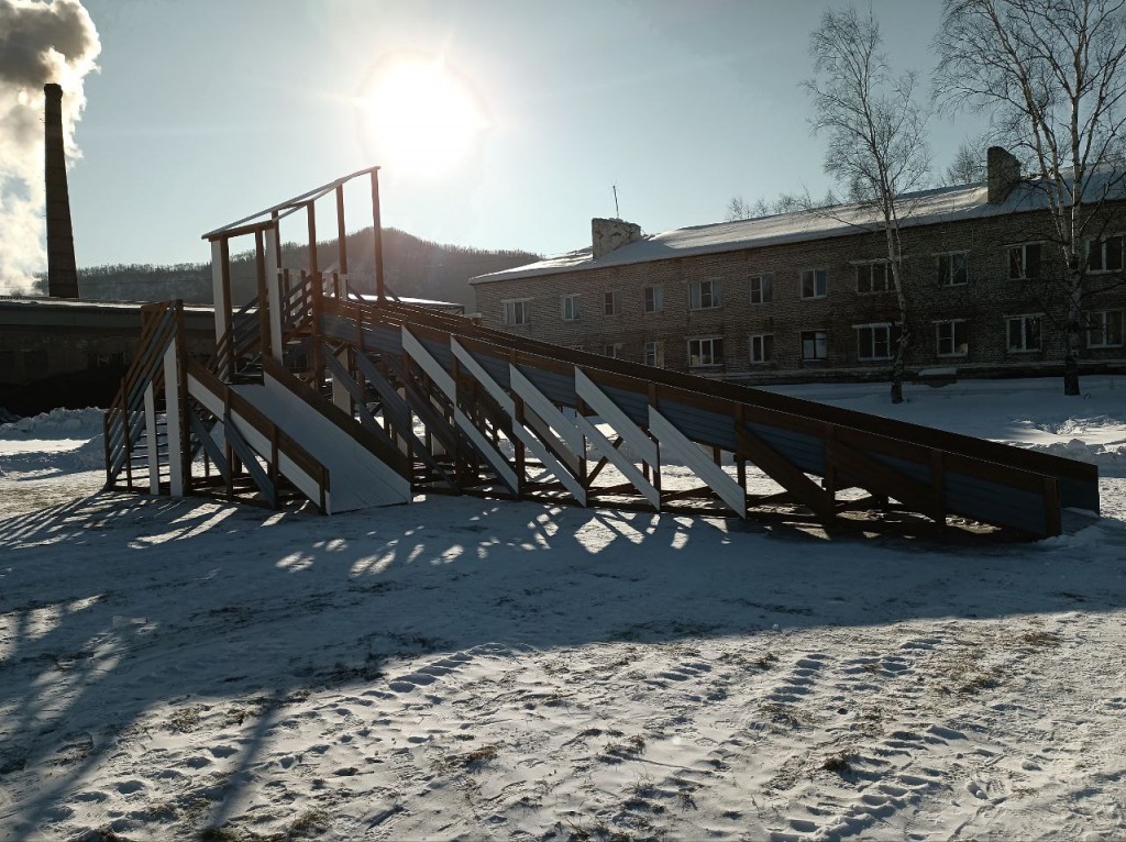 Зимняя заливная горка станет настоящим центром притяжения для детей и взрослых! Многоуровневая конструкция выполнена из бруса камерной сушки и украшена яркими элементами, что делает её не только безопасной, но и привлекательной.