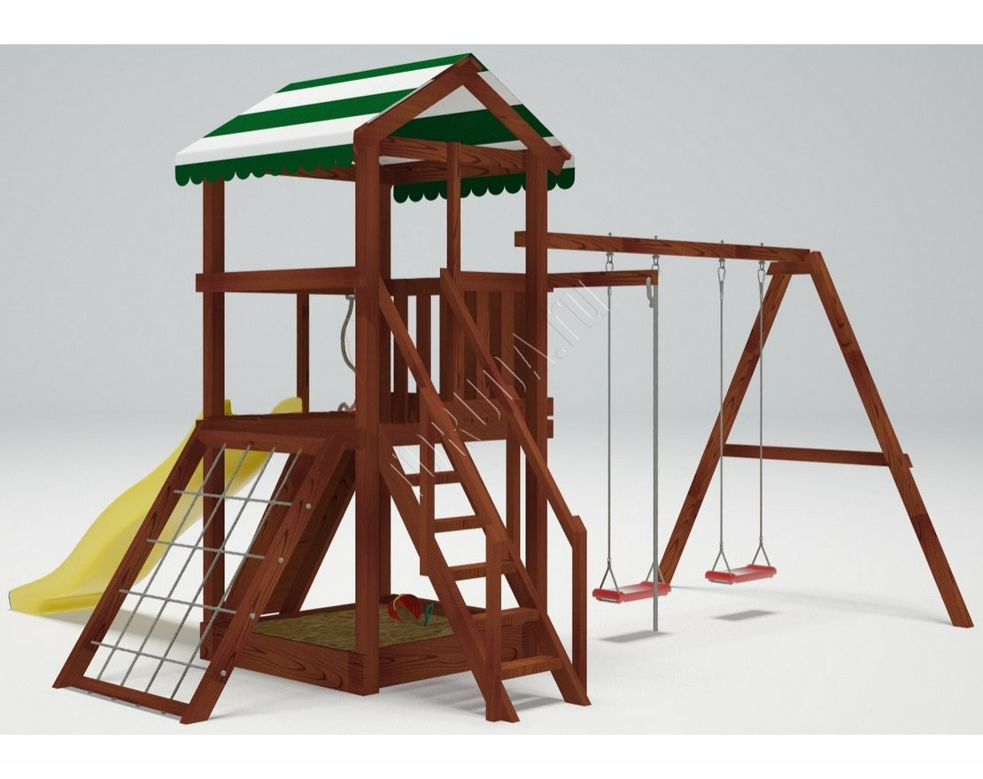 - Безопасность и надёжность: конструкция выполнена из качественных натуральных материалов, устойчивых к погодным условиям. Болтовые соединения закрыты защитными заглушками, а все элементы комплекса проходят строгий контроль качества.