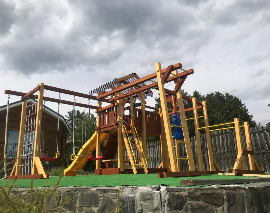 - Обработка дерева: лакокрасочным покрытием с разрешающим сертификатом для покрытия детских игровых площадок