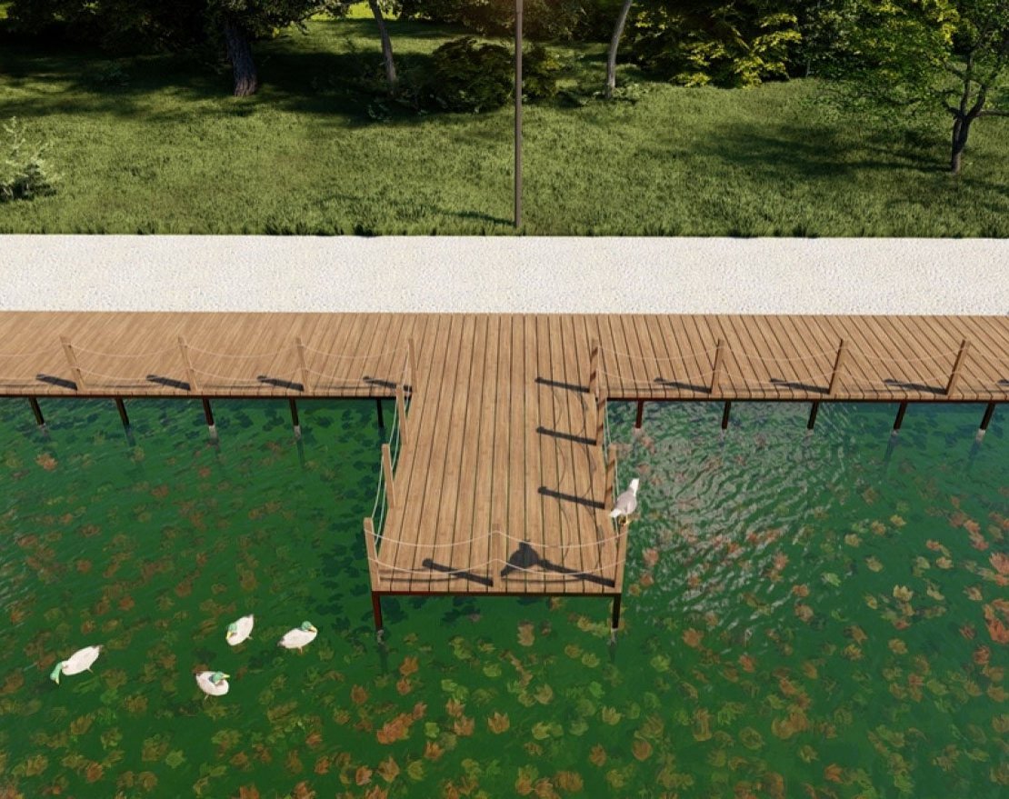 Пирс будет укреплен сваями, что обеспечит его стабильность и прочность.